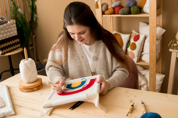 Creating textured art with punch needle is simple, fun, and calming. Here’s all you need to do:
